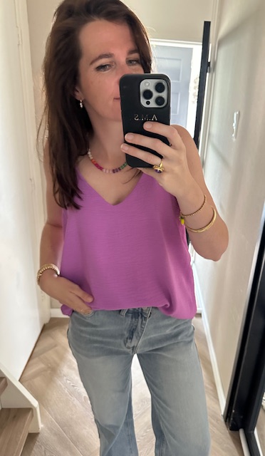 Van ons favoriete merkje hebben we nu een hele mooie paarse basic top. De top heeft spaghettibandjes en een mooie v-hals. De achterkant heeft een mooie hals. De paarse dames top valt goed op lengte en schijnt niet door doordat de top een dubbel laagje stof heeft. Hierdoor heb je een mooie kwaliteits top voor een leuke prijs.