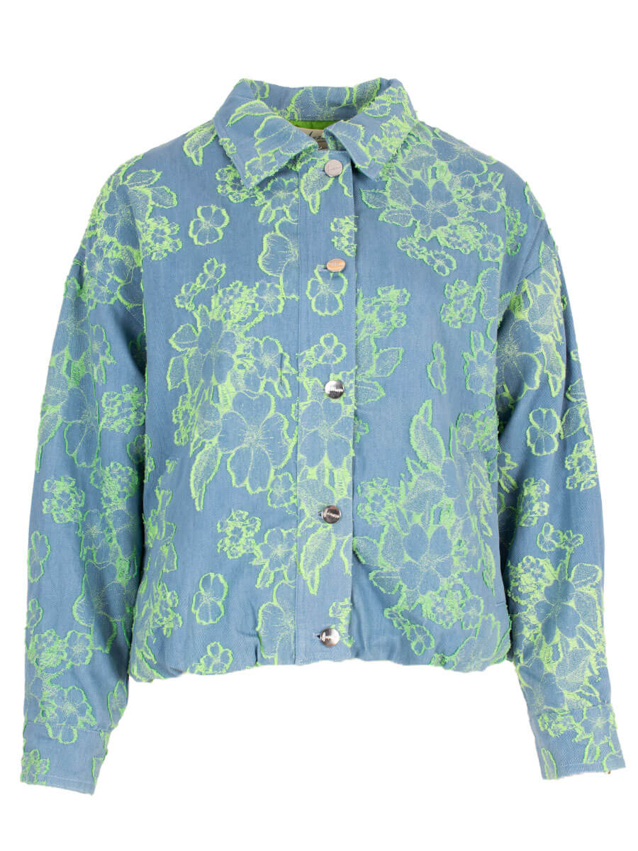 Blauw jasje met bloemenprint Azzurro mode