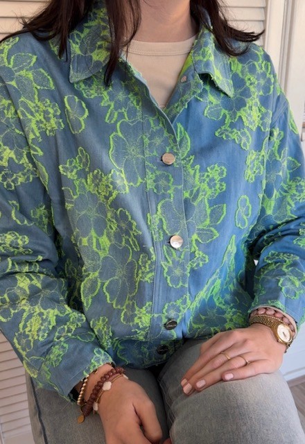 Hoe tof is dit nieuwe jasje van Azzurro? Een echte eye catcher is dit toffe denim look jasje met geborduurde bloemen. De stof is een zachte jeansstof (100% katoen) en draagt hierdoor heel comfortabel. Het damesjasje heeft zilverkleurige knopen en is gevoerd.