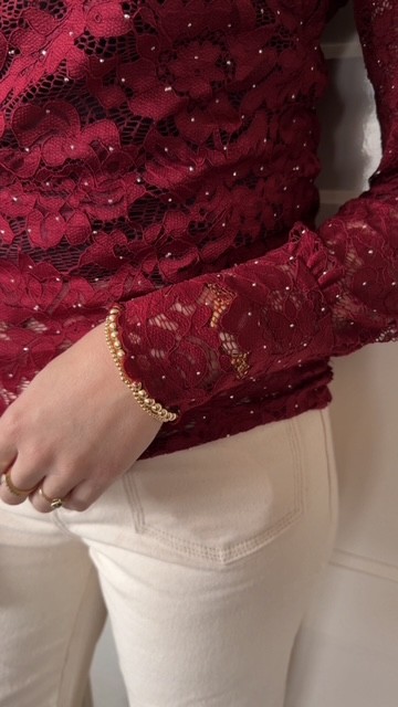 Bordeaux rode kanten top lange mouw Azzurro