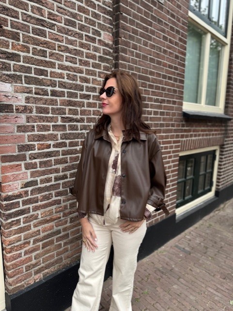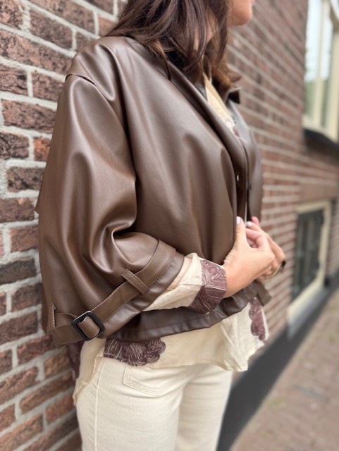 Bruin leatherlook oversized jasje