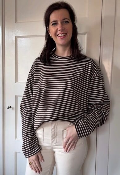 Is bruin niet je kleur? We hebben het gestreepte shirt ook in het rood.
