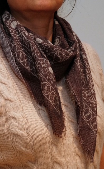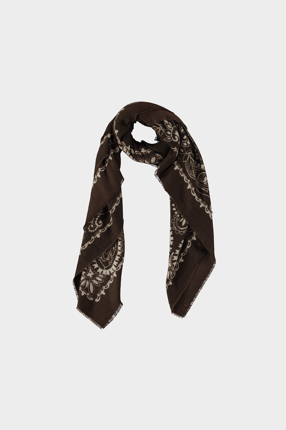 Bruin is de trendkleur van dit seizoen, je kunt er echt niet meer omheen. We hebben een prachtige donkerbruine sjaal gevonden met toffe beige paisley print.