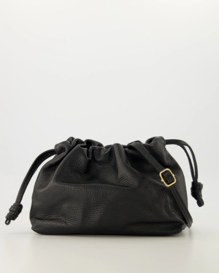 Dit super gave zwarte leren tasje is nu nieuw binnen! Deze zwarte damestas is net even iets anders. Je kunt de tas gewoon als handtas dragen maar ook met het bijgeleverde hengsel crossbody dragen. Je kunt de tas rechthoekig maken. Wij vinden het leuk om de koorden aan te trekken zoals op de foto om zo een leuk effect te krijgen.