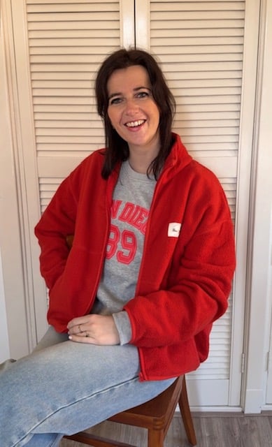 Draag over de trui ons rode teddy vest en je hebt een hele toffe combinatie!